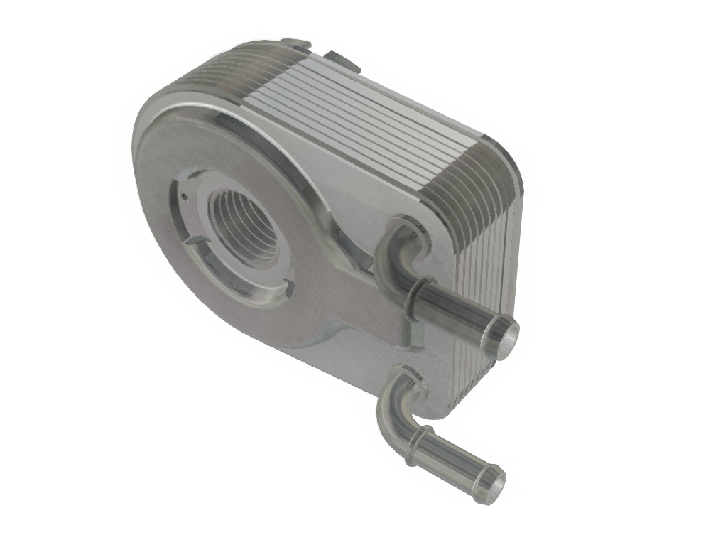 外掛水冷油鋁油冷器通常采用疊片式設(shè)計(jì),適用于汽車上所有潤(rùn)滑系統(tǒng)的熱平衡管理,通過(guò)潤(rùn)滑油和冷卻液之間熱量的相互傳遞,保證潤(rùn)滑油處在一個(gè)合理的溫度范圍,減少溫度過(guò)低時(shí)的油耗和延緩溫度過(guò)高時(shí)導(dǎo)致的潤(rùn)滑油老化。該款產(chǎn)品一般分為整體式和圓盤(pán)式兩種結(jié)構(gòu)。