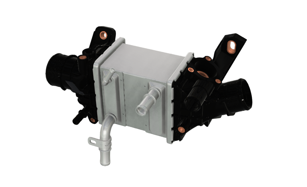 增壓空氣冷卻系統(tǒng)中,傳統(tǒng)的空空中冷器由于體積大,換熱效率低,目前,先進(jìn)的技術(shù)是采用水冷的中冷器,其結(jié)構(gòu)設(shè)計(jì)緊湊,體積更小、換熱效率高、阻力損失小、能夠降低油耗、節(jié)省發(fā)動(dòng)機(jī)艙前端模塊的空間,且進(jìn)氣容積小,發(fā)動(dòng)機(jī)響應(yīng)速度快,提高客戶的體驗(yàn)。